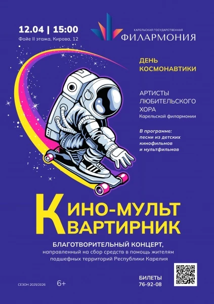 Благотворительный кино-мульт-квартирник Любительского хора филармонии пройдёт в поддержку жителей подшефных территорий Республики Карелии. Концерт состоится в фойе 2 этажа филармонии.