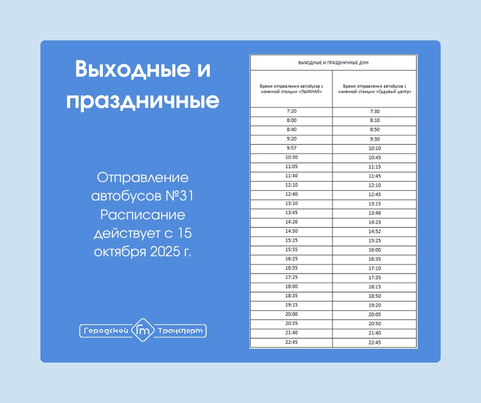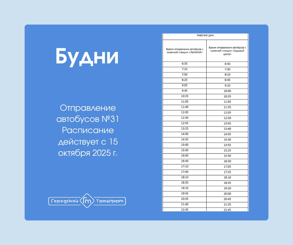 «Мы рады сообщить, что учли ваши дополнительные пожелания и скорректировали расписание маршрута номер 31! Теперь ваши поездки станут еще более удобными и комфортными» — говорится в сообщении.