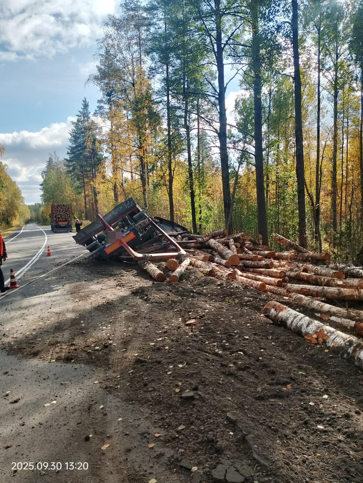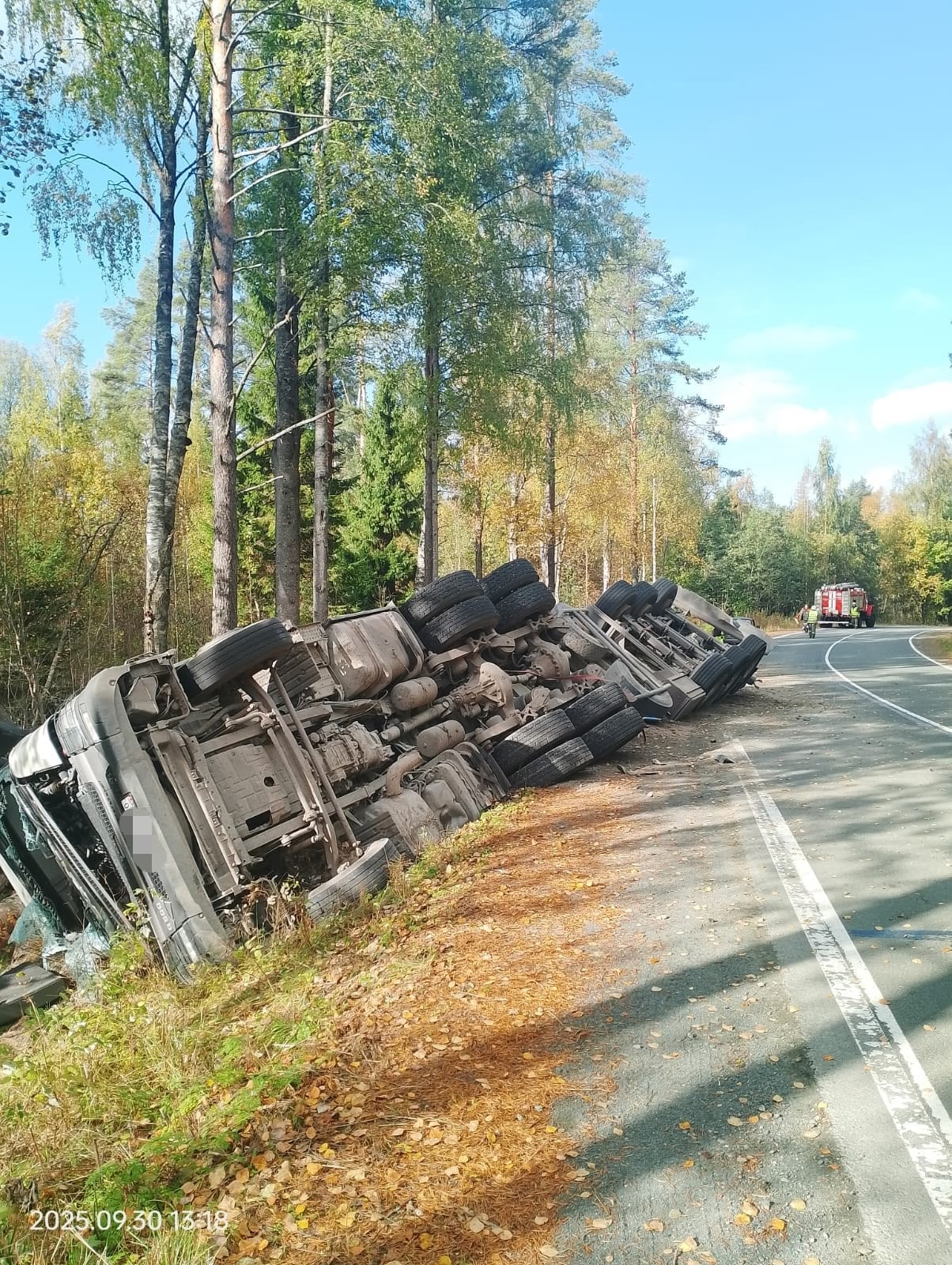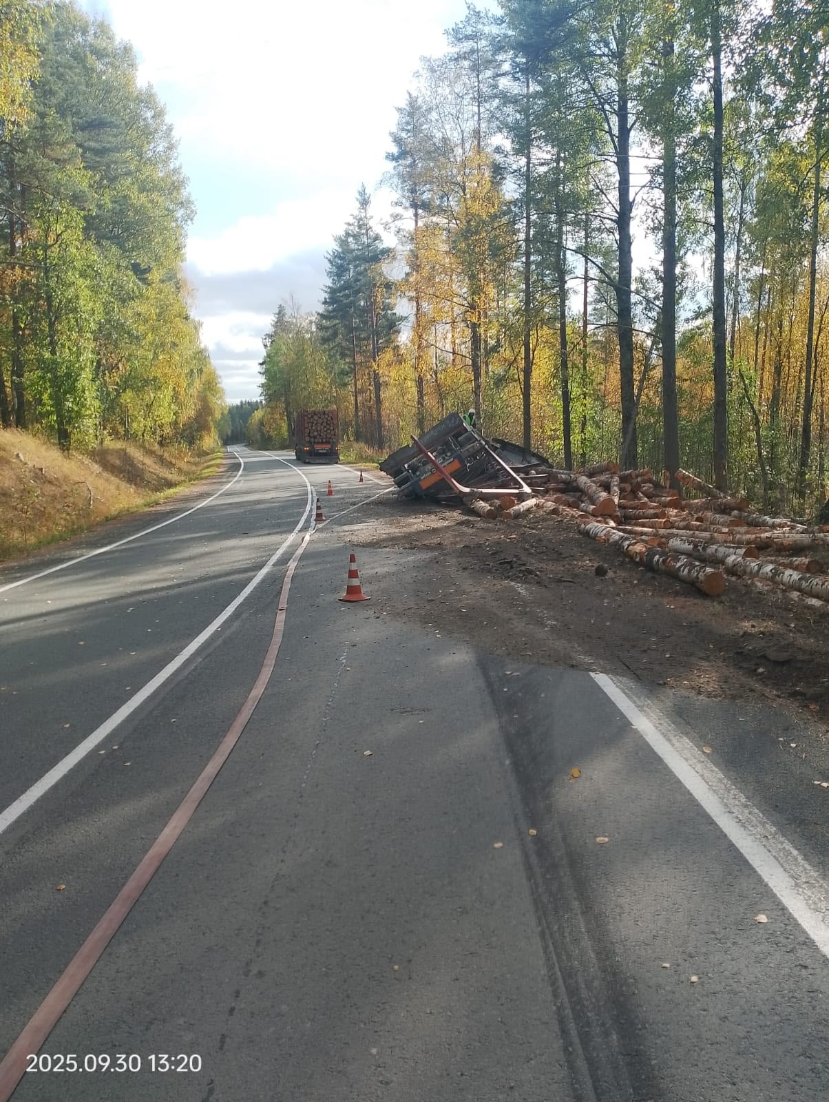 30 сентября примерно в 12:35 на 11-м километре автодороги у деревни Мишинсельга съехал в кювет и опрокинулся лесовоз «Scania», сообщает ОПС по Пряжинскому району.
