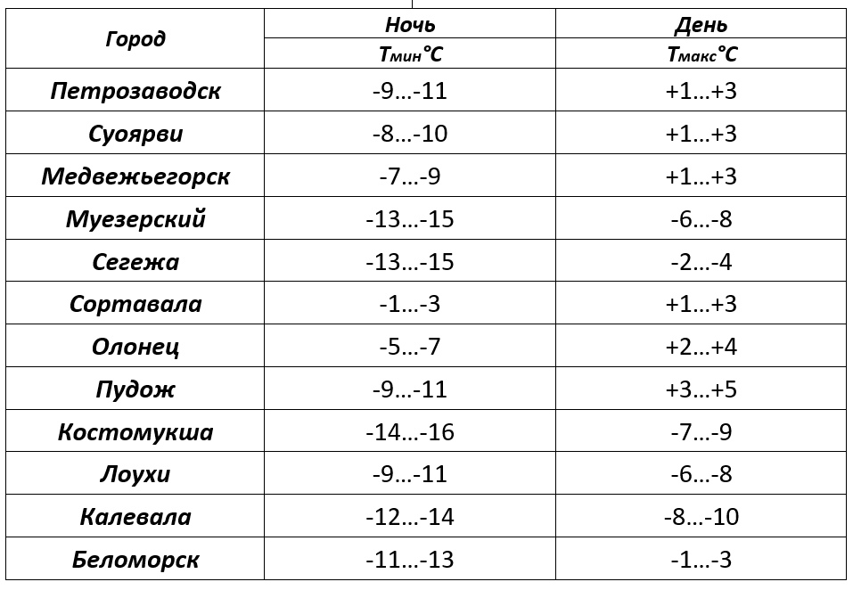 Прогноз погоды по Петрозаводску и городам Карелии на 20.12.24 по данным центра «Фобос».
