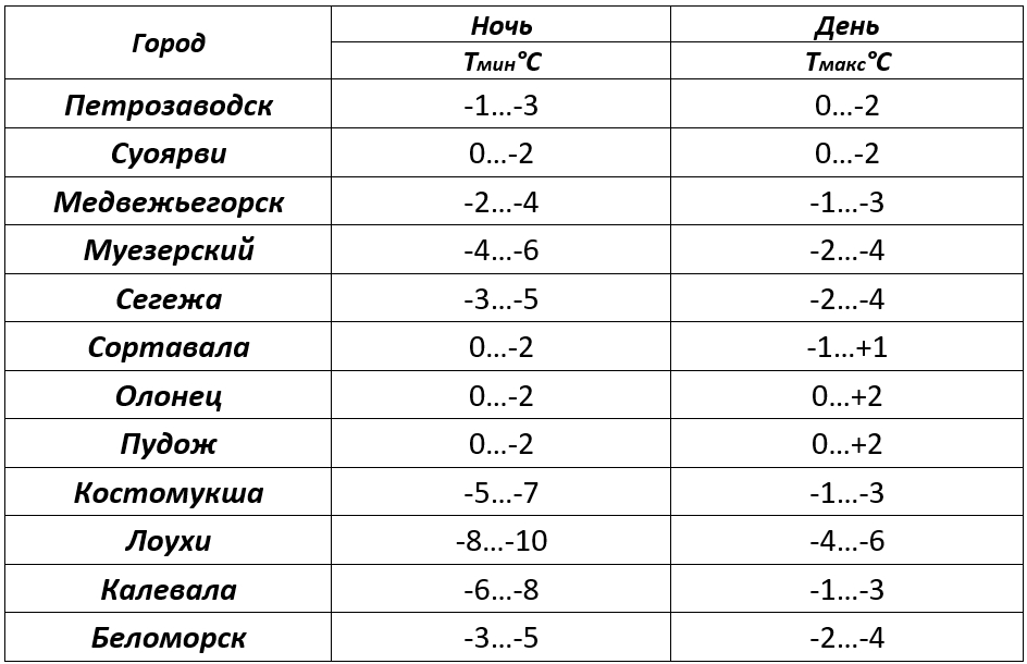 Прогноз погоды по Петрозаводску и городам Карелии на 05.03.26 по данным центра «Фобос».