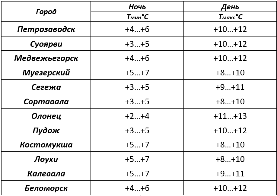 Прогноз погоды по Петрозаводску и городам Карелии на 08.10.25 по данным центра «Фобос».