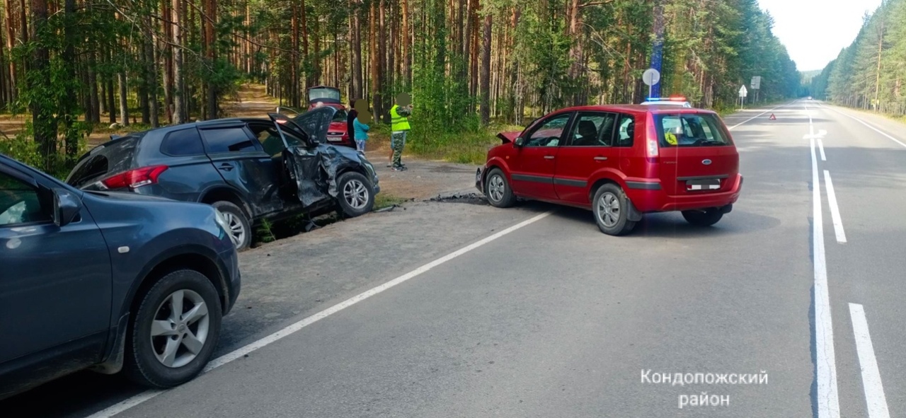 Около 9 утра в Кондопожском районе на 23 км автодороги Шуйская-Гирвас водитель автомобиля «Mitsubishi Outlander», двигаясь в сторону Гирваса, при повороте налево не предоставил преимущество автомобилю «Ford Fusion». В результате столкновения пострадали три человека: 78-летний водитель «Mitsubishi», 73-летний водитель и 18-летний пассажир «Ford».