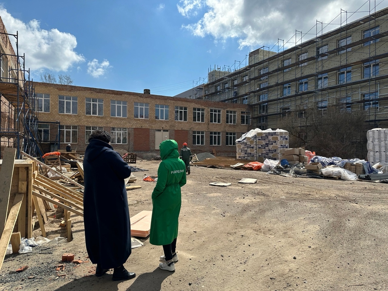 Глава карельской столицы Инна Колыхматова обсудила ход работ в школе № 29 с директором Галиной Сталевской. Как отметила мэр города, ремонт идет строго по графику, часть здания уже обрела будущий цвет.