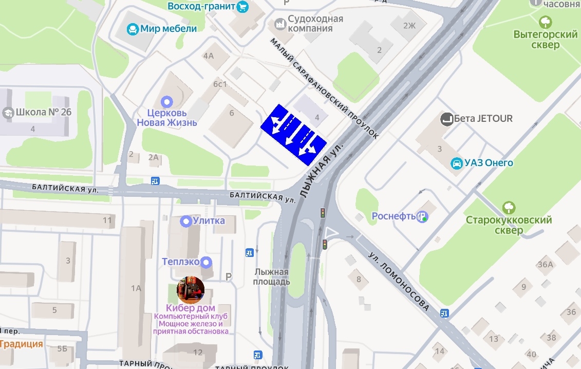 С 23 декабря на пересечении Лыжной и Балтийской улиц по направлению к улице Ровио с крайней правой полосы можно будет двигаться не только направо, но и прямо.