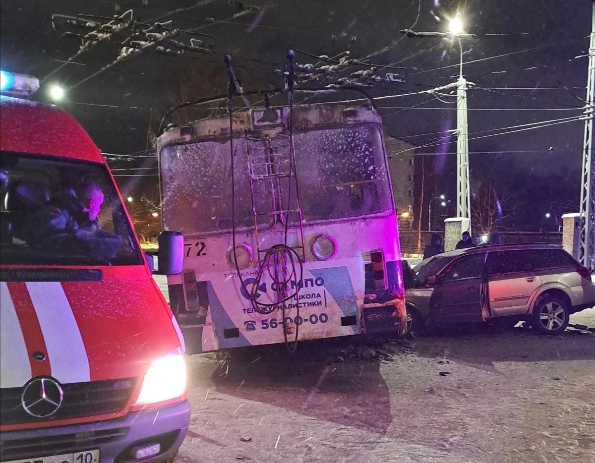Как сообщает ПМУП «Городской транспорт», троллейбус поворачивал с набережной на Московскую. В это время легковой автомобиль на большой скорости проехал на красный сигнал светофора и врезался в троллейбус. По информации Госавтоинспекции Петрозаводска, травмирован 19- летний водитель автомобиля «Subaru», имеющий стаж вождения 4 месяца. Молодой человек госпитализирован. 56 -летней женщине, кондуктору троллейбуса, назначено амбулаторное лечение.