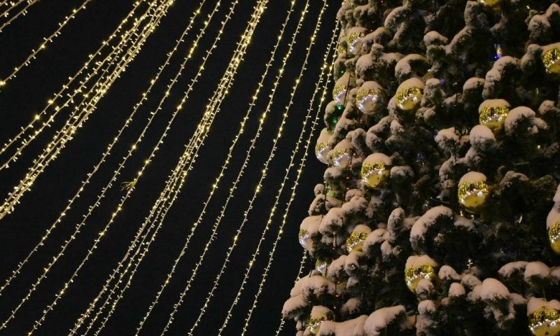 На площади Кирова рабочие устанавливают каркасную ель высотой 18 метров. Ее украсят световой гирляндой длиной 1 километр и 250 новогодними шарами.