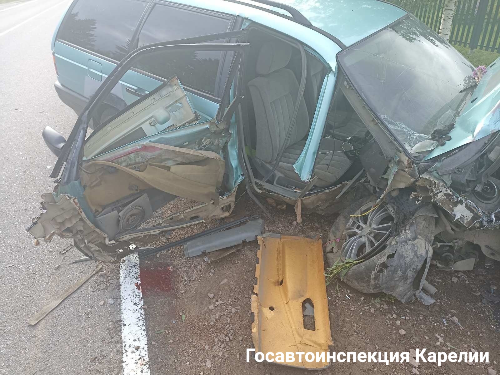 В этот же день приблизительно в 06:20 в Олонецком районе в деревне Мегрега 39-летний водитель автомобиля «Фольксваген Пассат» предположительно отвлекся от управления. Его машина съехала с дороги и врезалась в опору линии электропередач. В результате аварии получила травмы 50 — летняя пассажирка, которая впоследствии госпитализирована.